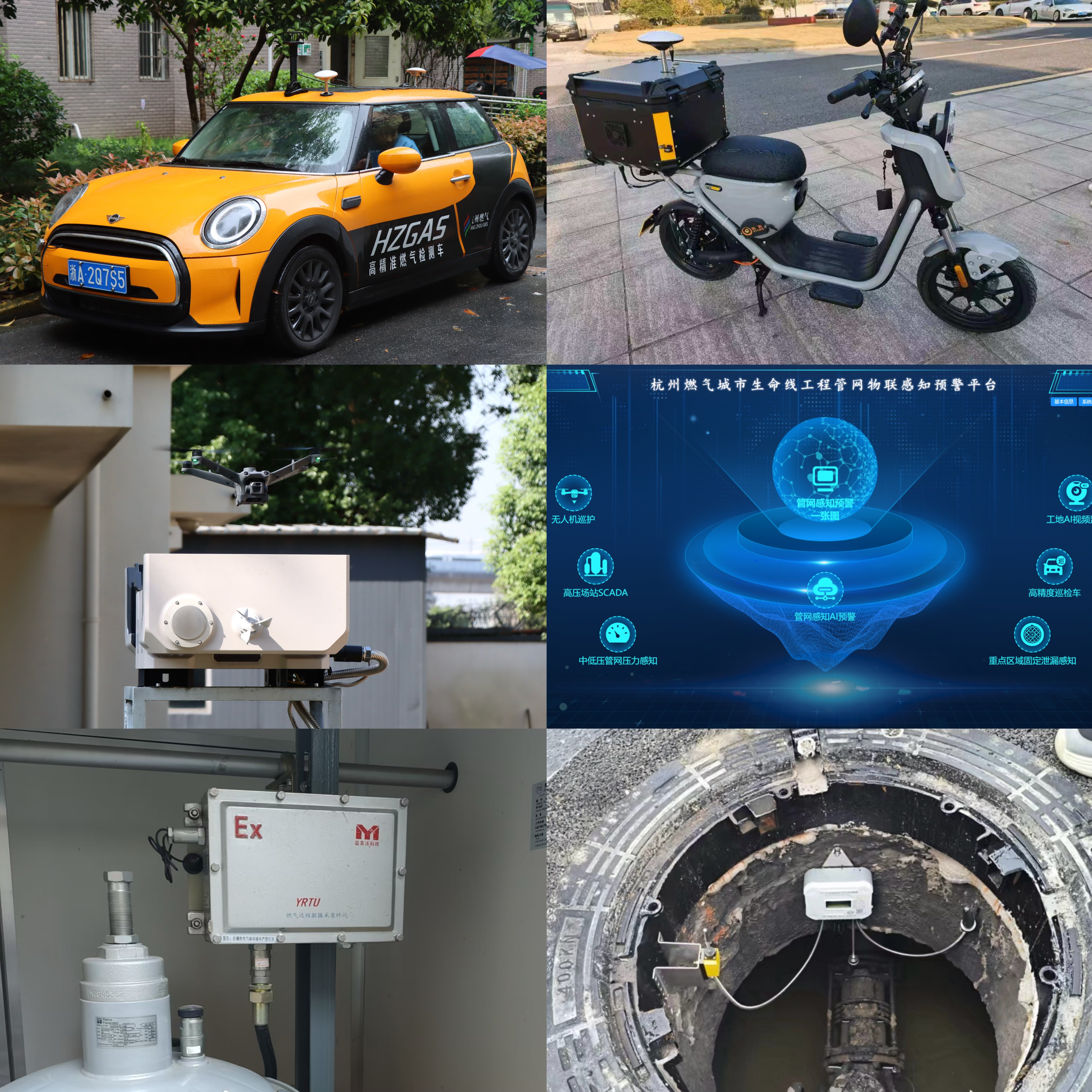 天然氣管道是保障城市能源供應(yīng)和千家萬(wàn)戶“煙火氣”的重要基礎(chǔ)設(shè)施。目前,杭州主城區(qū)地下天然氣管道約7500公里。針對(duì)天然氣管道“點(diǎn)多、線長(zhǎng)、面廣”,管控難、防破壞難的問(wèn)題,我們借力杭州城市大腦建設(shè)和AI技術(shù)發(fā)展,建設(shè)“無(wú)人機(jī)飛檢、高精車(chē)巡檢、視頻AI辨識(shí)、壓力降預(yù)警、閥門(mén)井監(jiān)測(cè)”五大場(chǎng)景,構(gòu)建“空中+地面+地下”多維度、立體式的燃?xì)夤芫W(wǎng)感知系統(tǒng),打造“快速感知+快速響應(yīng)+快速處置”燃?xì)夤芫W(wǎng)安全治理體系。