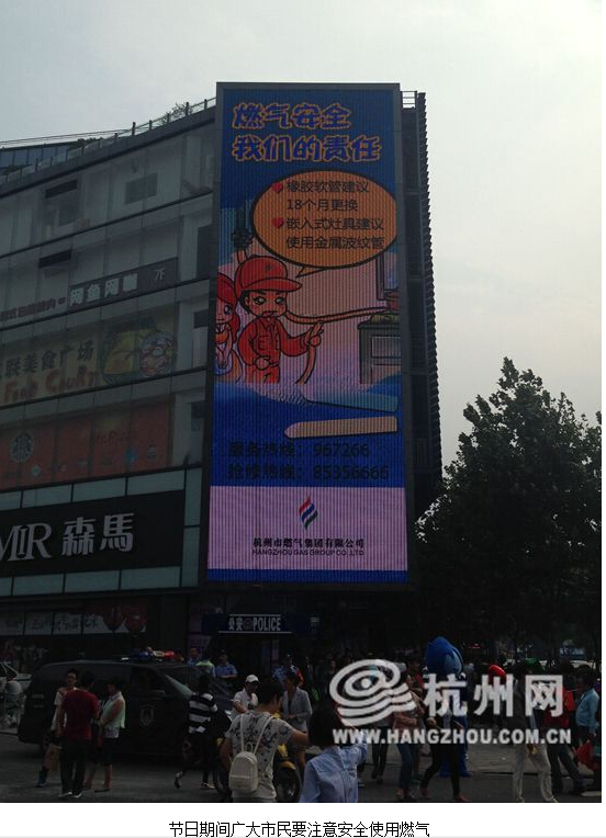 杭州網訊 十一國慶小長假如期而至,為全力保障城市燃氣安全,10月1日,杭州市天然氣公司的員工走上街頭,向市民發放安全用氣宣傳單。同時,還將持續在延安路工聯大廈顯示屏推送燃氣安全知識,提醒廣大市民,節日期間注意安全使用燃氣。