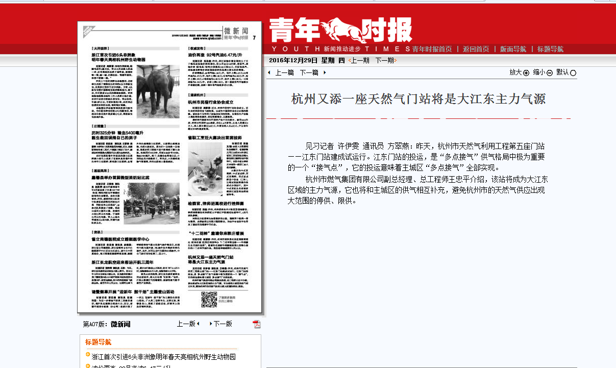 青年時報——杭州又添一座天然氣門站將是大江東主力氣源