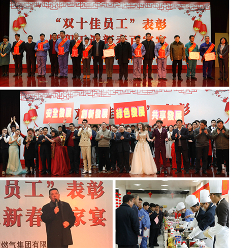 迎新春百家宴上,集團黨委書記、董事長蘆俊代表集團黨委、董事會發表了新春致辭。蘆董事長指出,2017年杭燃集團上下要圍繞實施“5441戰略”,推動企業持續發展,著力下好“一盤棋”、做到大家“一家親”、共追“杭燃夢”。蘆董事長強調,古語云雞有五德“文、武、勇、仁、信”,我們要向良禽——“雞”學五德,做到“雞鳴不已”,同時祝愿全體杭燃人及家屬2017年“金雞唱曉、聞雞起舞、事業進步、萬事如意!”。11個基層單位黨支部精心選送的特色節目亮相百家宴,舞蹈、相聲、歌曲聯唱,職工們載歌載舞,展現出了愛崗敬業的精神風貌和喜悅之情,現場氣氛激情熱烈,最后在響徹全場的《明天會更好》的歌聲中結束。此次活動進一步營造出杭燃人親如一家,攜手同行的良好氛圍,表達了全體杭燃人心懷夢想,奮力啟航的新春期許。