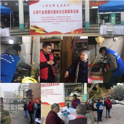 1127日上午,為深入貫徹黨的十九大精神,積極推進行業黨建工作,努力做到黨的建設與業務建設互促共進,發揚黨的先進性和純潔性,管網輸配分公司第三黨支部與杭州市公用事業監管中心黨總支、三塘苑社區、水務集團城南分公司、公共自行車公司、錢江水利赤山埠分公司在三塘苑社區中心廣場開展結對共建志愿服務活動。