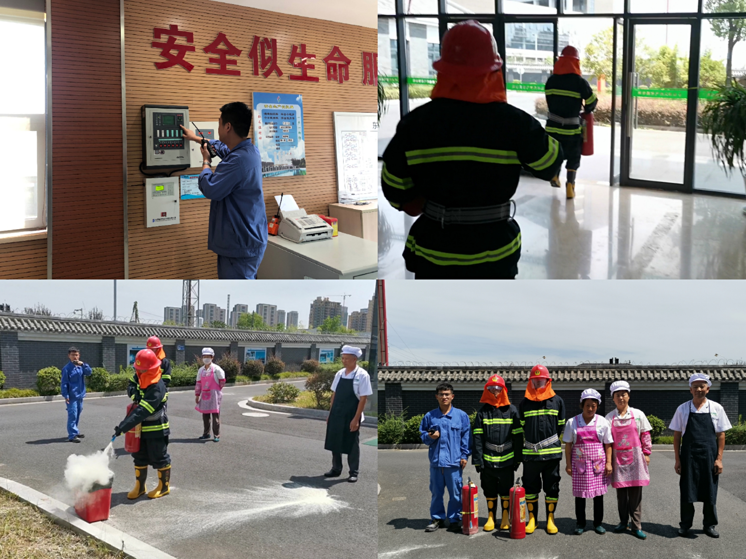 中控人員緊盯現場監控,觀察事故動態。外操運行人員接到指令后,即刻按照消防應急預案操作。他們嚴格按照規定佩戴,全副武裝攜帶8kg干粉滅火器,迅速狂奔向食堂“著火點”,將火災事故扼殺在萌芽階段,有效執行了“三分鐘出警”的制度要求。之后,運行班組人員劉海文與參加演練的成員交流探討了演練過程,也向食堂人員就正確使用滅火器(一檢、二提、三拔、四噴)的步驟詳細解析。