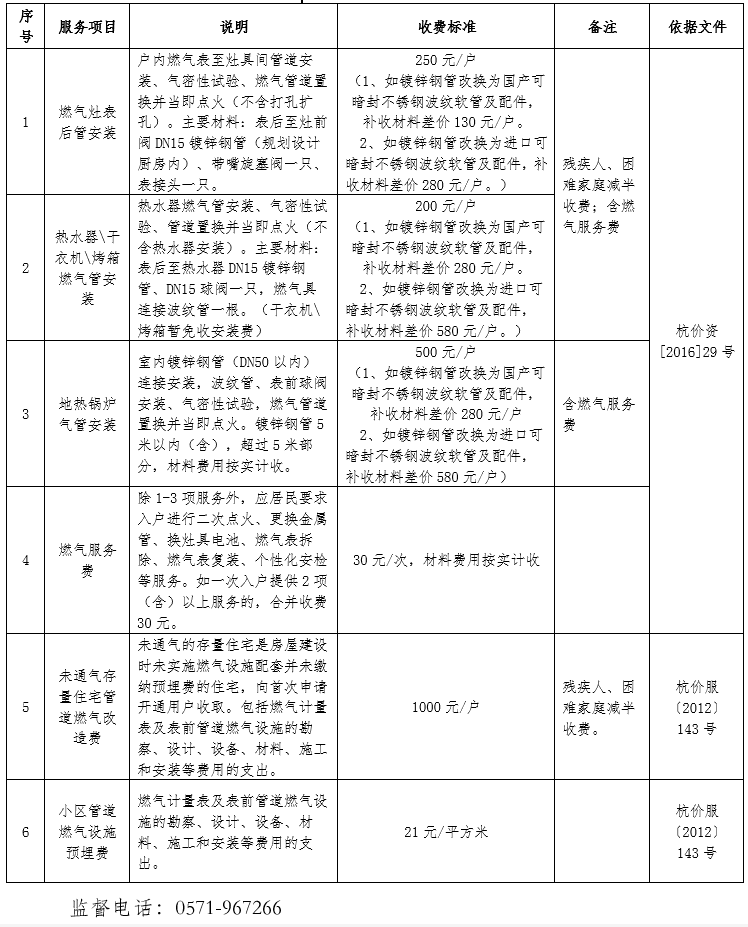 杭價資【2016】29號--杭州市物價局關于核定居民生活用管道燃氣相關服務收費標準的通知.pdf